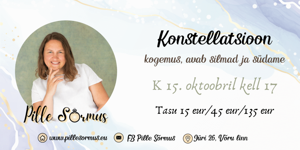 Aura Soma® Human Design Hüpnoos Joonistamine Joonistamisteraapia Juhendatud meditatsioonid Konstellatsioon Koolitus Kõik Meditatsioon Mentorlus OSHO aktiivne meditatsioon® Süsteemne pedagoogika Teraapia Varia