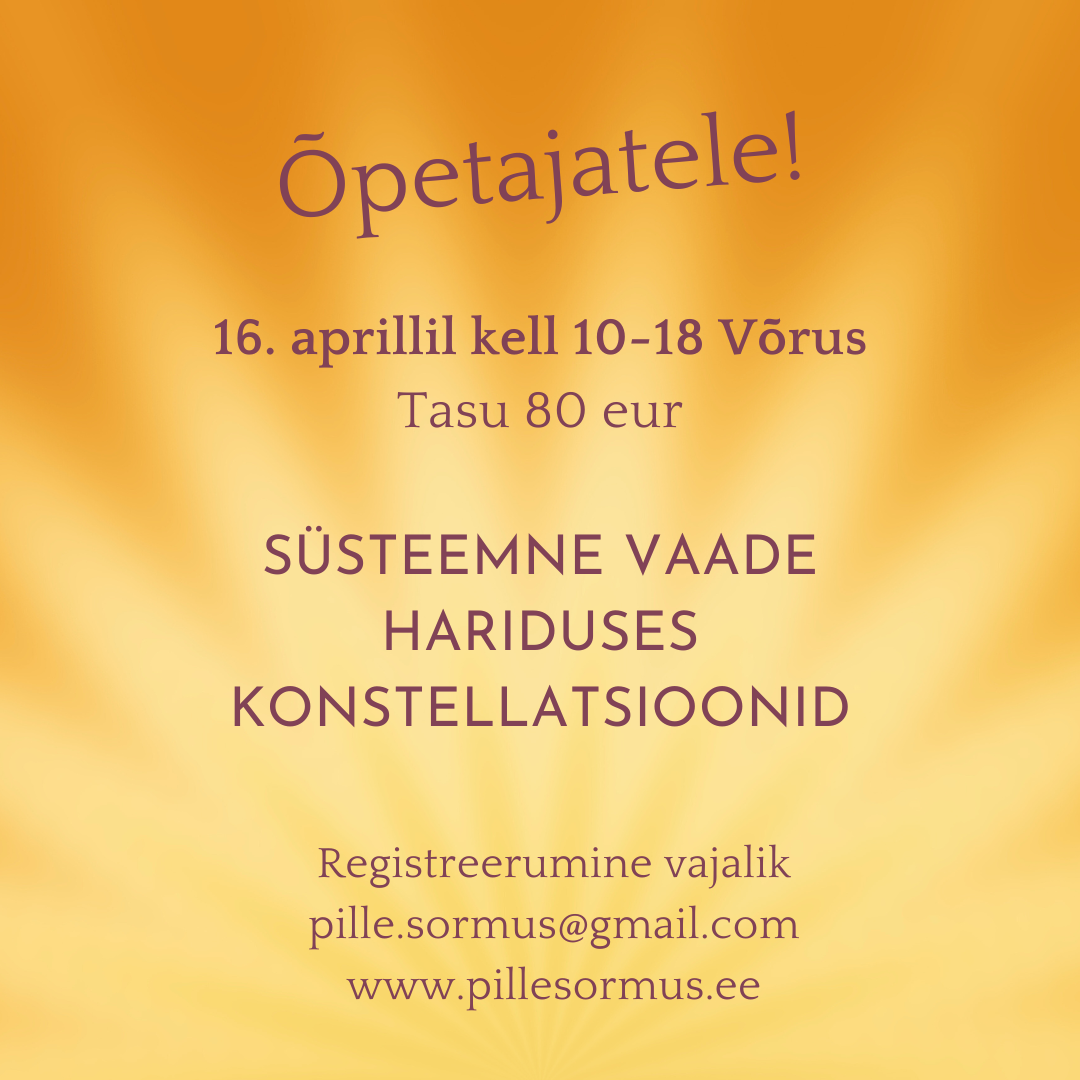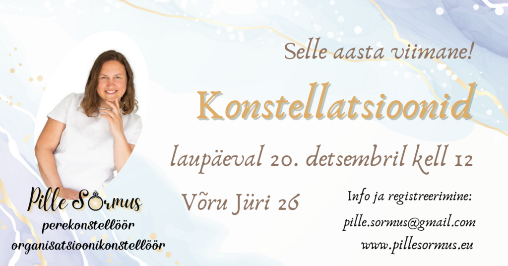 Oled oodatud ja taasoodatud konstellatsiooni. Kui soovid osaleda, siis kirjuta mulle pille.sormus@gmail.com või FB messengeri. Töö hind 135…